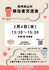 2026年02月04日開催 高山村【2月4日(水)】移住者交流会を開催します -