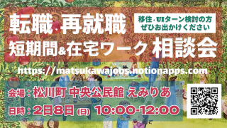 2026年02月08日開催 松川町【2/8(日)】転職・再就職・短期間&在宅ワーク相談会を開催します! -