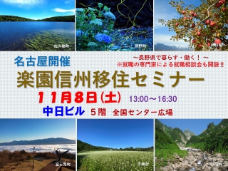 2025年11月08日開催 佐久穂町 小谷村 富士見町 辰野町 松川町 下條村2025年11月8日(土)開催! 『楽園信州移住セミナー』 in名古屋!就職相談も開設 -