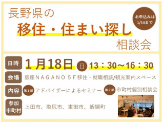 【R8.1/18 (日)】長野県の移住・住まい探し相談会 @銀座NAGANO