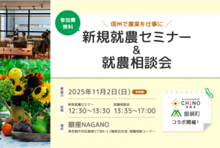 2025年11月02日開催 長野県 飯綱町 茅野市【R7.11/2】東京で開催!「新規就農セミナー&就農相談会 in 銀座NAGANO」<茅野市・飯綱町とコラボ> -