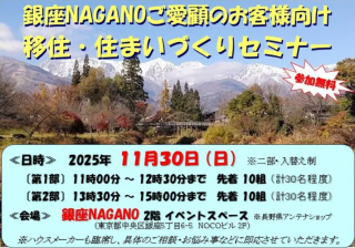 2025年11月30日開催 長野県【R7.11.30(日)】移住・住まいづくりセミナー -