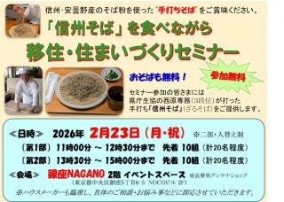 2026年02月23日開催 長野県【R8.2.23(月・祝)】信州そばを食べながら『移住・住まいづくりセミナー』 -