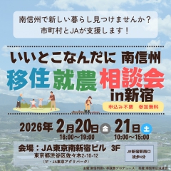 2026年02月20日~21日開催 松川町【2/19-2/20東京開催】いいとこなんだに南信州移住就農相談会に出展します -