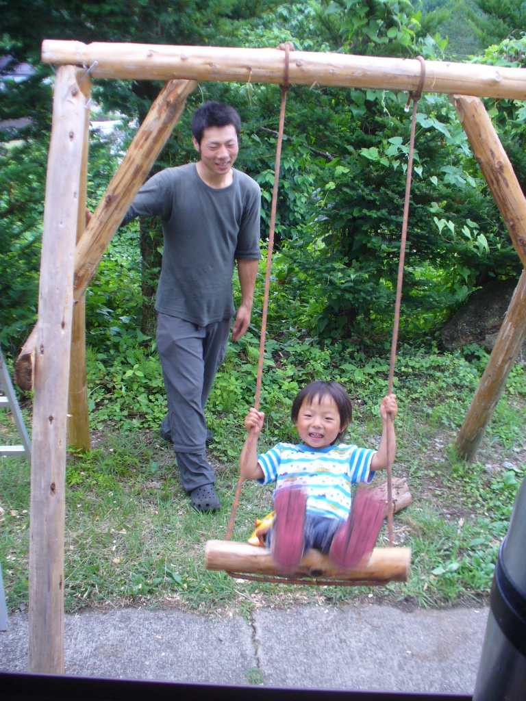 (写真は“山から採ってきた木で作ったブランコ” とのこと!)