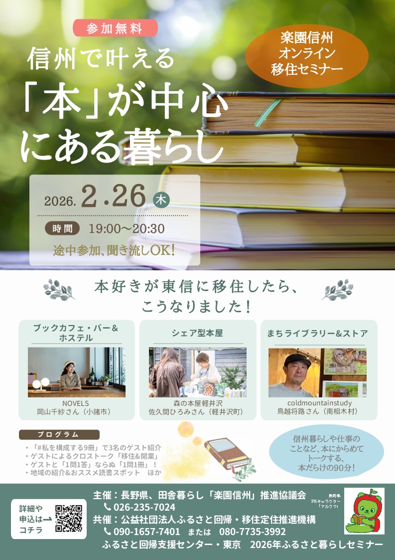 【2月26日(木)19時~】信州で叶える「本」が中心にある暮らし~楽園信州オンラインセミナー