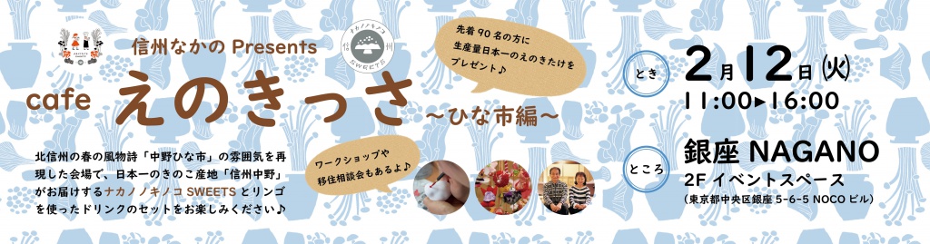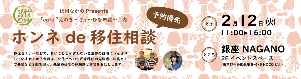 【2月12日/東京銀座】 信州なかのPresents「cafe『えのきっさ』~ひな市編~」内 ホンネde移住相談