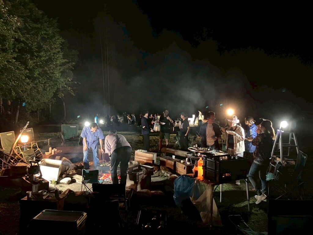 温泉で汗を流した後は、いちばの森でBBQ交流会。