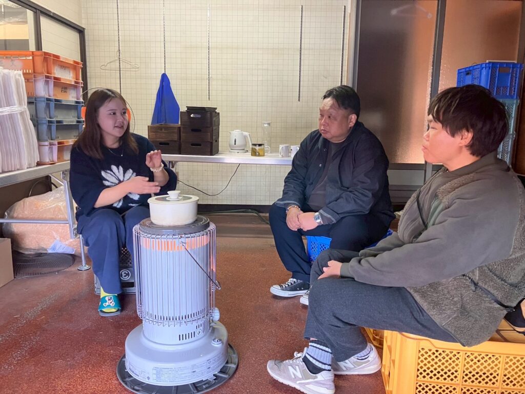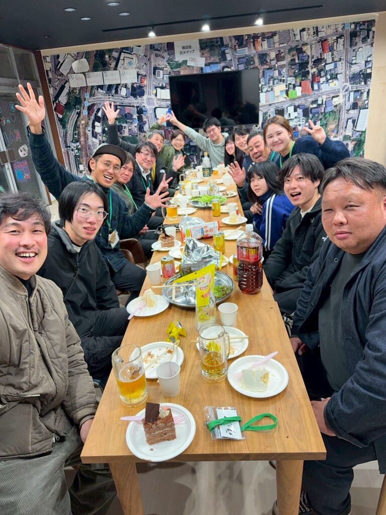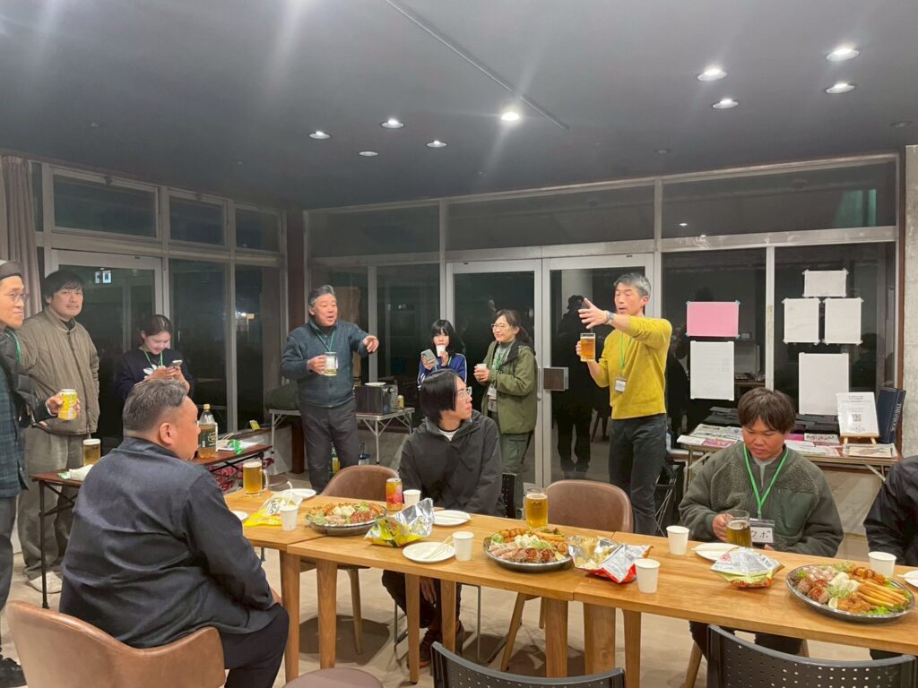 その後、若者の夢を応援する地域コミュニティ「マツカワたがやすかいぎ」のイベントに参加しました。イベント後の懇親会にも参加いただき、地元の方々とお酒も交えてたっぷり交流を深めていただきました。