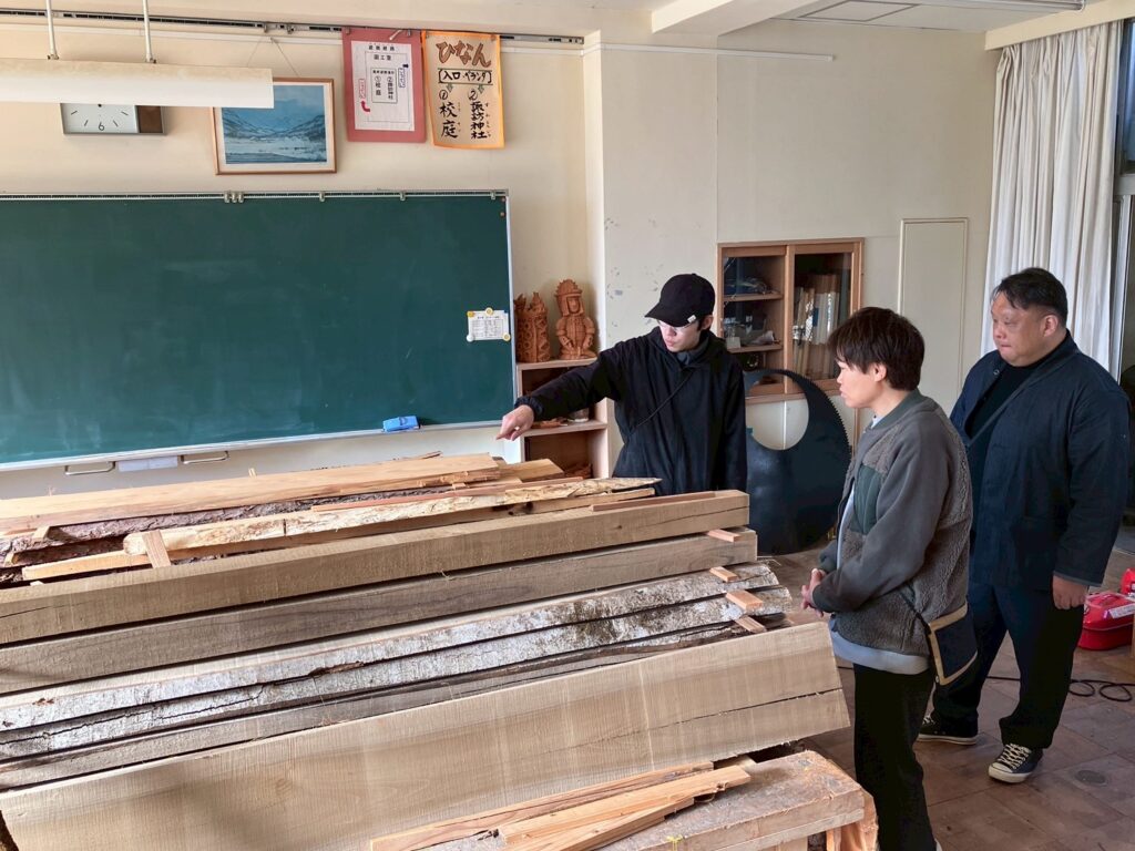 翌日は、山の上の廃校で木材プロダクトの制作に取り組むIKUTO Lab.の田中大也さんを訪ねました。スプーンづくりを体験させてもらいながら、普段どんな暮らしや仕事をしているのか、これから地域で実現したい展望などを伺いました。