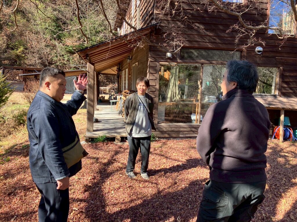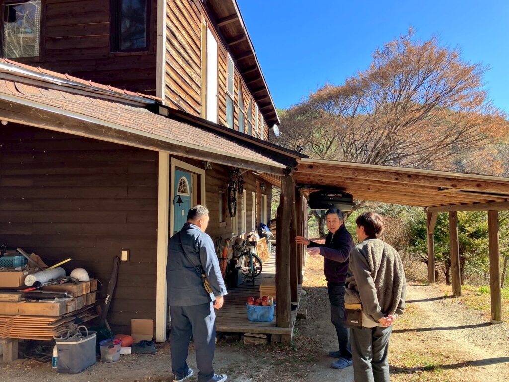 次に訪問したのがセルフビルドの家づくりをお仕事にしている正井広昭さん。十数年前に移住して最初に手掛けたというご自身の家に招いていただき、なぜ家づくりをしたいと思ったのか、どんなところにこだわった家づくりをしているのか、などを伺いました。家を建てる場合の費用や期間などの詳しいお話もしていただきました。