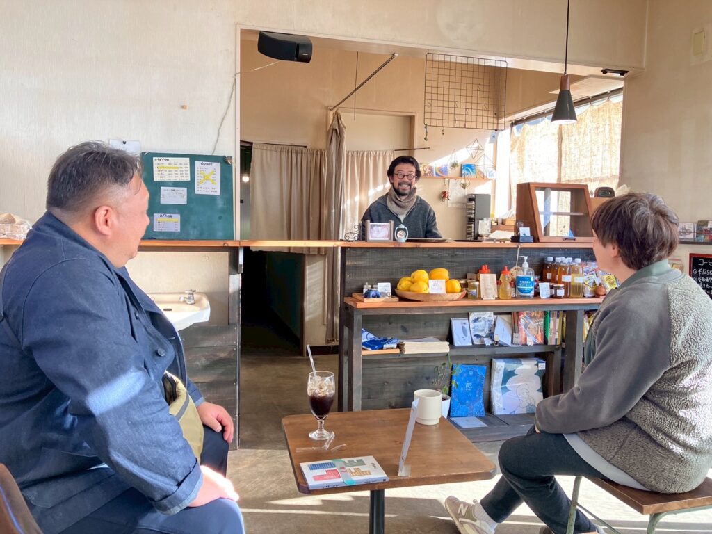 最後に訪ねたのはコーヒー屋を営む小田切勝さん(珈琲十分 店主)。美味しいコーヒーをいただきながら、移住したきっかけや暮らしぶりについてたっぷりとお話を伺いました。この日は天気がよかったので、スペシャルなお散歩タイムも。