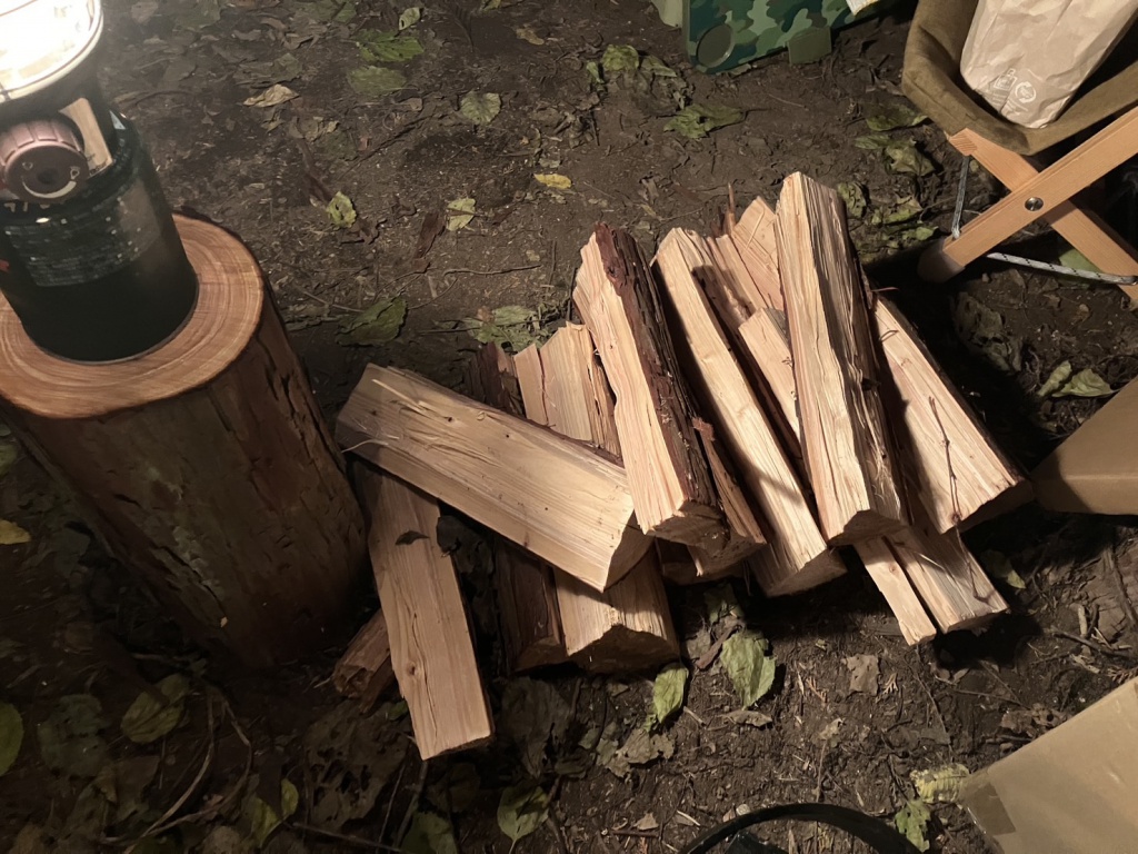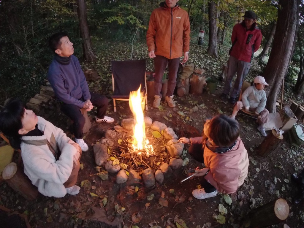 ・「いちばの森」での焚き火、薪割り、森カフェ体験