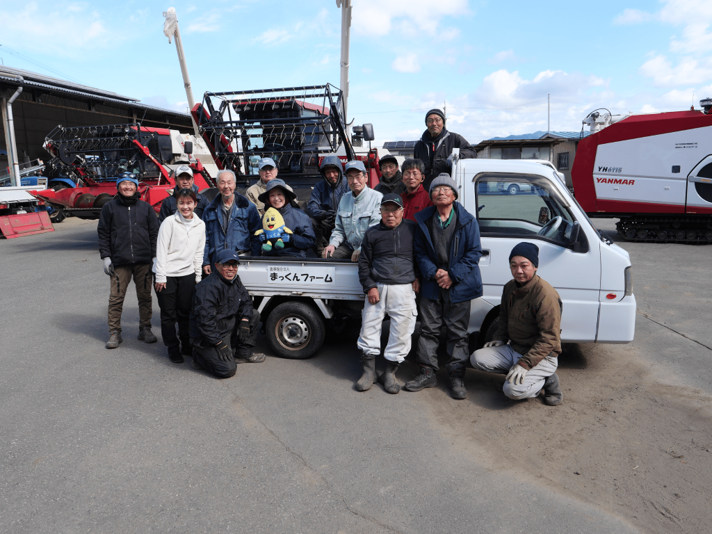 南箕輪村は古くから稲作を主として農業を営んできた地域で、各地区ごとに共同で農作業を行っていました。しかし、各地区ごとに共同組合を維持することが難しくなり、2006年に「一村一農場」の理念を掲げて、関係者の協議の元、各地区の組合を統合する形で「農事組合法人まっくんファーム」が設立されました。現在、まっくんファームでは農家からの一括農地借り受け依頼にも応じ、村の水田農業の中心的担い手として、特別栽培米である「風の村米だより」を中心とした水稲、そばや大豆などの穀物を作付けています。